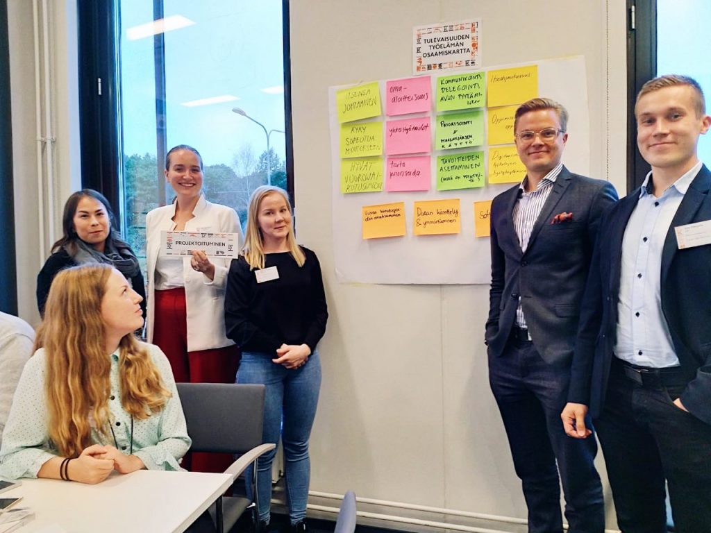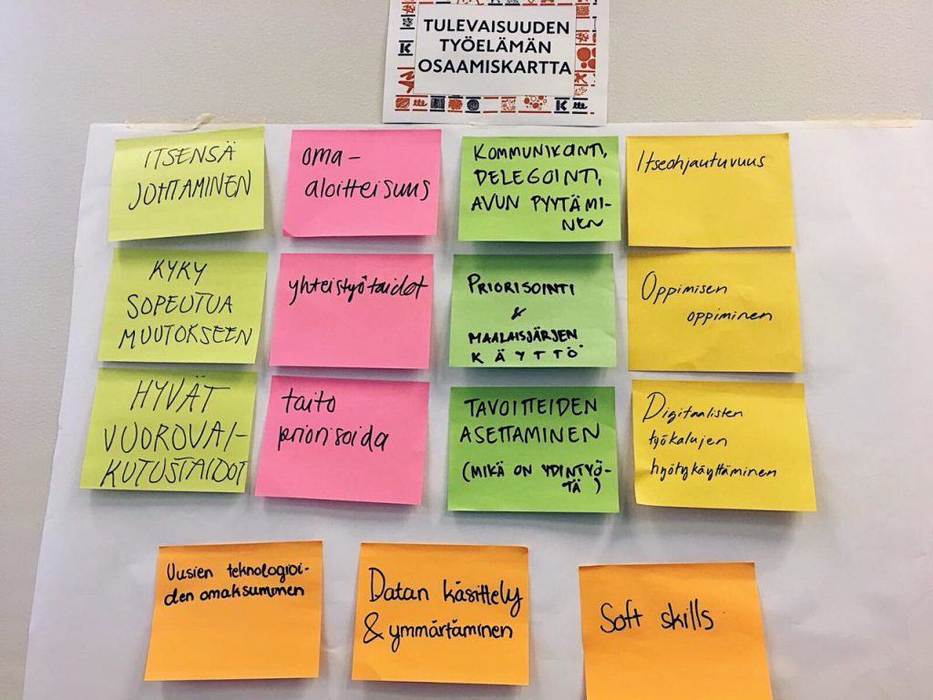 Tulevaisuuden työelämää pohdittiin myös Tehdään töitä -harjoittelijoiden vuoden kolmannessa urasparrauksessa Keskolla. Ohjelman urasparrausten tarkoituksena on antaa harjoittelijoille konkreettisia työkaluja työelämää varten. Tilaisuudet on suunniteltu yhteistyössä kampanjan yritysten kanssa, sillä haluamme yhdessä luoda nuorille kestävämpää ja parempaa työelämää. Digitalisaation vaikutuksesta työelämässä vaadittavat taidot, sekä työnantajan ja työntekijän välinen suhde, muuttuu. Urasparrauksessa harjoittelijat pääsivätkin pohtimaan sitä, mitä taitoja vaaditaan tulevaisuuden työelämän työkalupakkiin. Esiin nousivat teemat kuten itsensä johtaminen, vuorovaikutustaidot sekä jatkuva uuden oppiminen.
