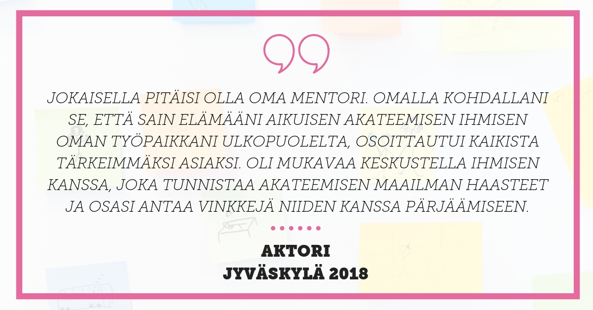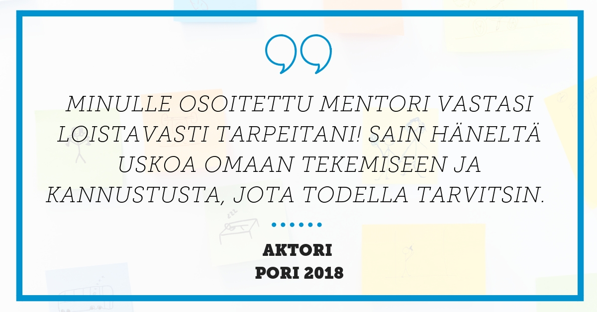 Haku Porin, Vaasan ja Rovaniemen mentoriohjelmiin on auki maanantaihin 22.4. saakka. Lue lisää mentoriohjelmasta ja hae mukaan täältä!